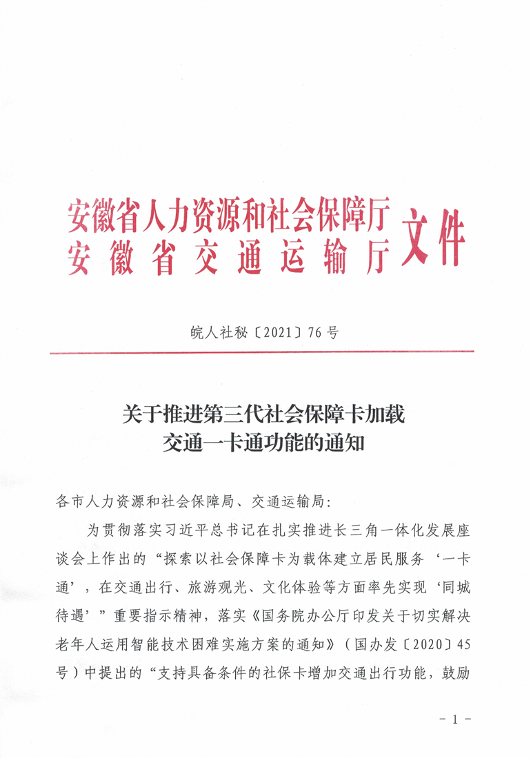 关于推进第三代社会保障卡加载交通一卡通功能的通知