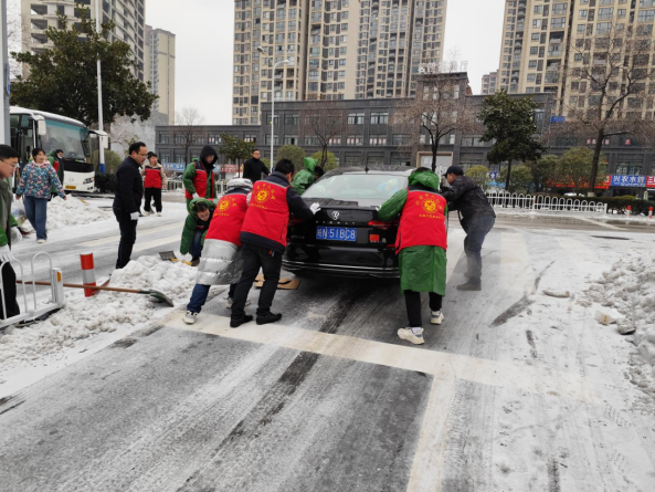 一大早,在市人社局包保路段(解放路至磨子潭路)清雪现场,广大党员干部、志愿者们齐上阵,大家配合默契、热情高涨、干劲十足,一起挥动着手中的铁锹,以最快的速度清理道路积雪和结冰。在铲雪过程中志愿者们主动为打滑车辆推车,白雪皑皑中的“一抹红”构成了这个冬日雪景中最靓丽的风景线。经过50余名党员志愿者几个小时的努力,包保路段积雪暗冰基本清理干净。大家用汗水和实干铲出了一条条“安全路”,最大程度的降低了积雪给交通带来的安全隐患。