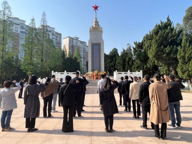 在烈士纪念碑前,伴随着国歌声响起,全体人员唱中华人民共和国国歌,国歌唱毕,全场肃立默哀。随后,全体党员干部举起右手、握紧拳头,重温入党誓词,用铿锵有力的誓言,告慰烈士英魂。之后,大家有序瞻仰烈士纪念塔,追忆烈士的丰功伟绩和崇高精神,表达深切悼念和敬仰之情。
