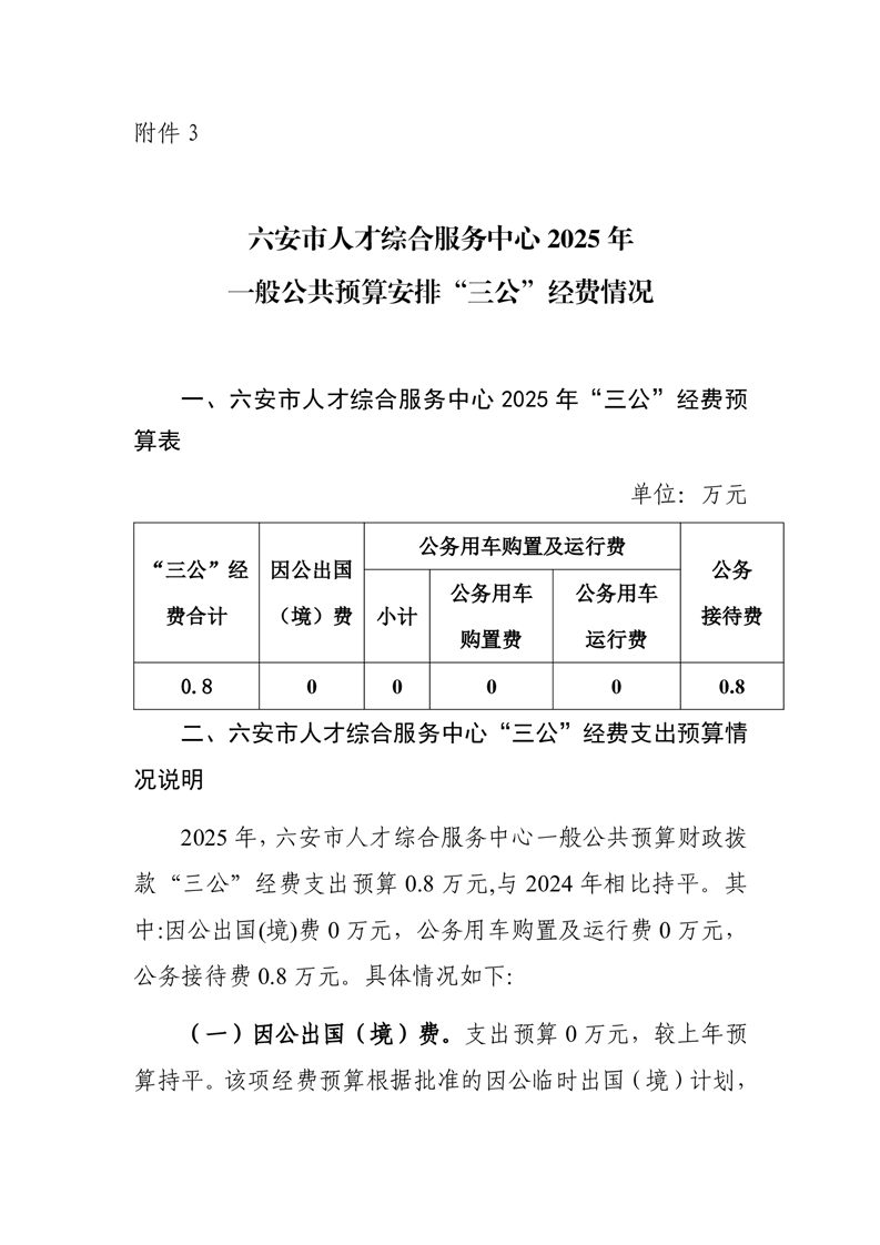 六安市人才综合服务中心2025年一般公共预算安排“三公”经费公开