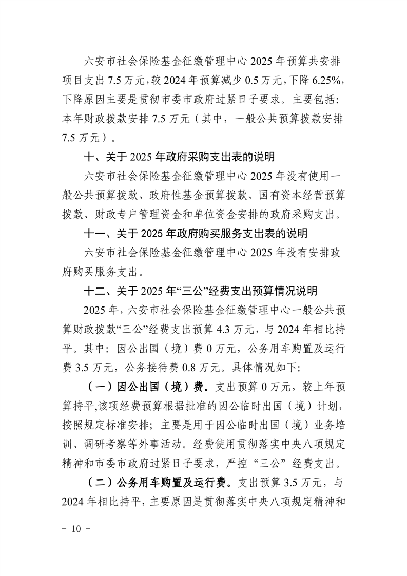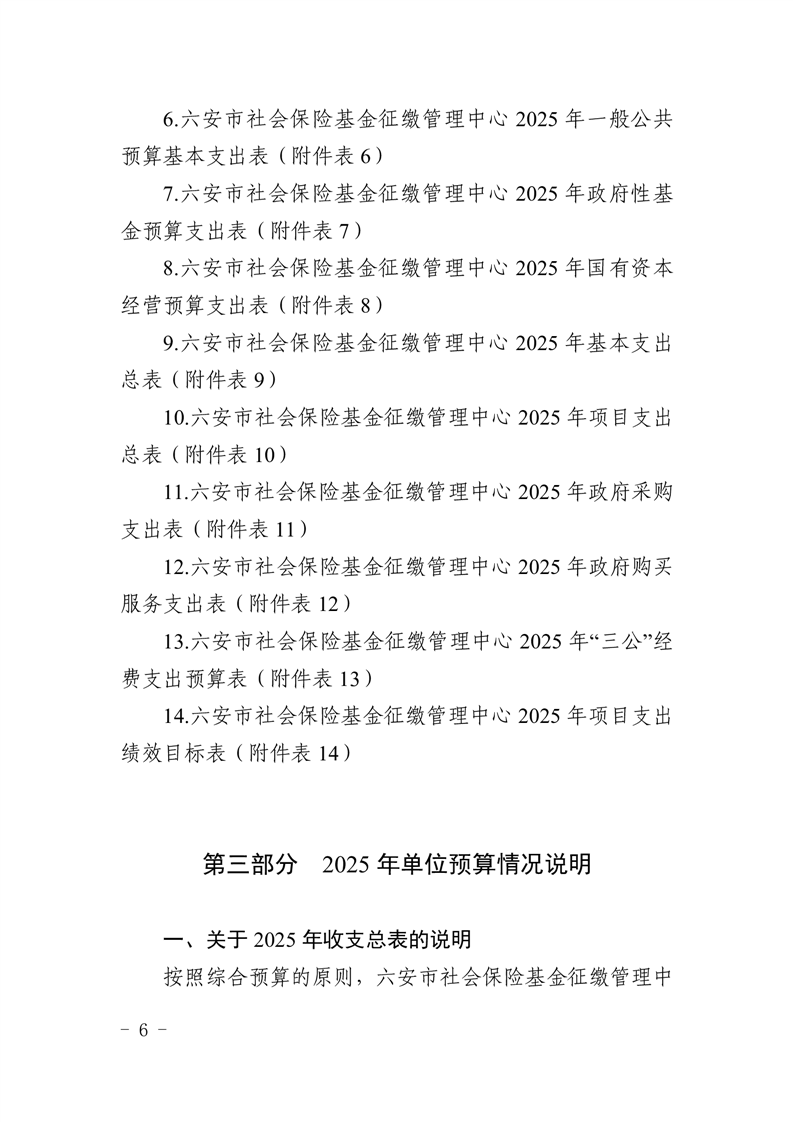 六安市社会保险基金征缴管理中心2025年单位预算公开