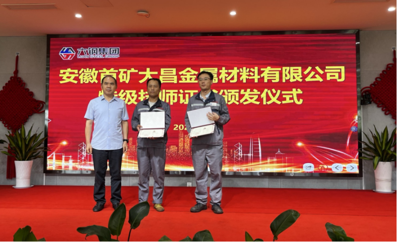 近日,安徽首矿大昌金属材料有限公司通过方案制定、班组推荐、综合评审、集中研究和结果公示等程序,完成了首批特级技师评审,邢王磊、李双园两名同志被认定为该企业首批特级技师,也是我市首批特级技师,具有里程碑意义。7月23日,安徽首矿大昌金属材料有限公司举行特级技师证书颁发仪式,市人社局四级调研员孔庆好和相关科室负责人参加。
