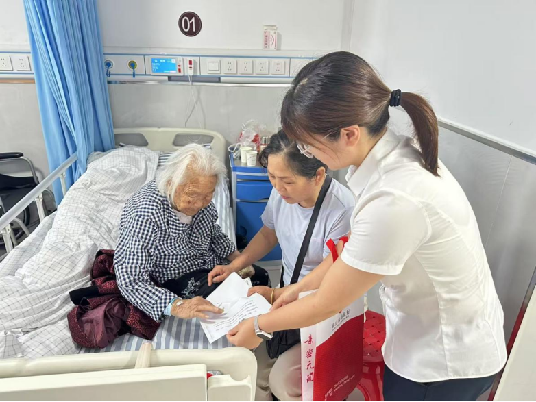 当天下午,工作人员赶往医院,在病床前为老人完成身份核实、信息采集、资料签署等业务流程,并带领老人亲属聂女士前往网点柜面办理业务。同时,为确保老人能顺利使用社保卡,工作人员还耐心向亲属讲解使用方法和注意事项。工作人员现场为老人完成制卡到激活全流程业务,保障了其正常用卡及时享受医保待遇。